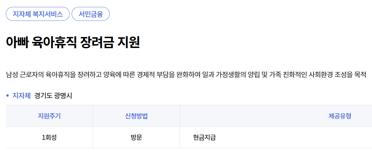 화면을 클릭하면 아빠 육아휴직 장려금 지원금 제도로 연결됩니다.