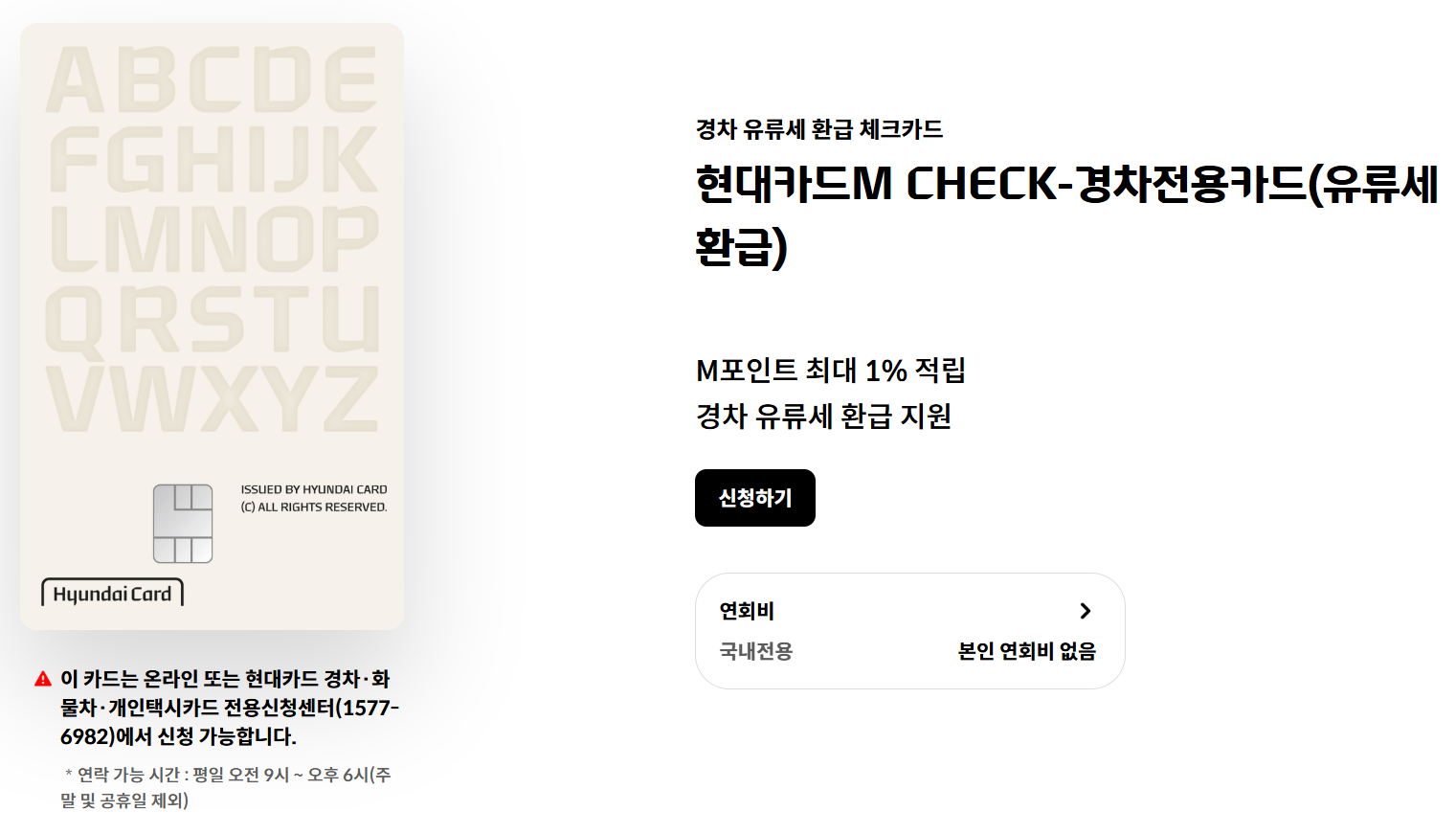 | 현대카드 [현대카드M CHECK 경차전용카드(유류세환급)] | M포인트 최대 1% 적립 |
