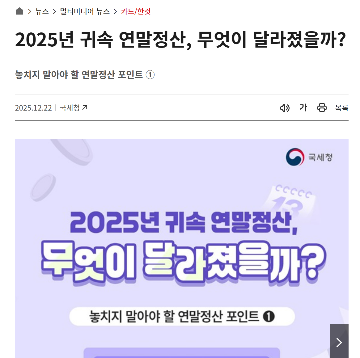 이 글에서는 국세청과 정책브리핑을 바탕으로 2025년 귀속 연말정산에서 달라진 핵심 내용을 하나씩 쉽게 풀어 설명해 드리겠습니다.